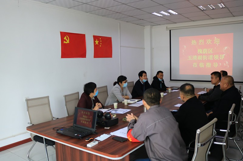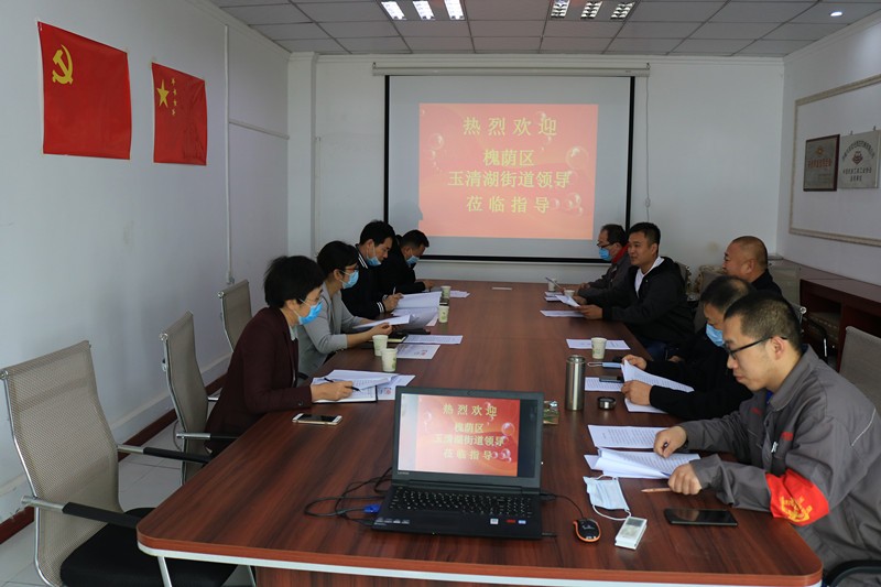 5月9日上午,槐蔭區(qū)玉清湖街道黨工委書記逯明一行蒞臨公司,考察指導(dǎo)公司常態(tài)化疫情防控和復(fù)工復(fù)產(chǎn)工作,并召開座談會,深入了解企業(yè)發(fā)展過程中遇到的困難,直面問題、現(xiàn)場辦公。玉清湖街道應(yīng)急管理辦公室副主任陳國瑞、黨建工作辦公室副主任李偉偉、區(qū)自然資源局玉清湖國土所所長張超陪同。公司董事長徐福厚、副董事長魏士山、總經(jīng)理徐鵬、黨支部書記兼生產(chǎn)副總孔祥健、董事會秘書兼辦公室主任王德華熱情接待了逯明書記一行。![]()